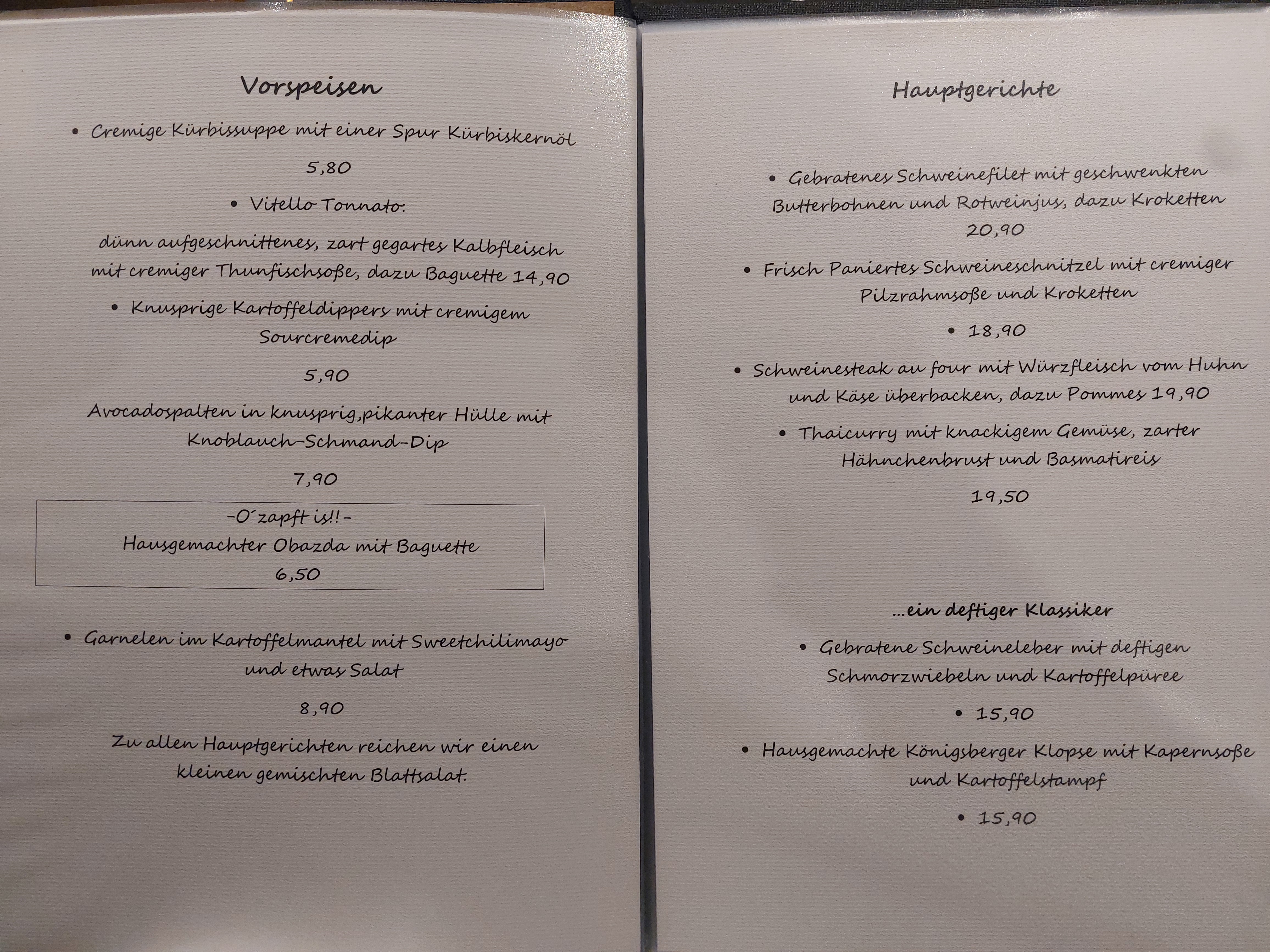 Unsere Küche ist von der gut bürgerlichen Küche geprägt, beinhaltet aber auch viele moderne Einschläge wie Burger, Pasta und Co.